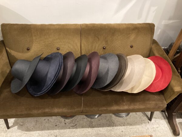 紳士ものだとヌートリアを混ぜた物も以前は使われていました。フェルトは大別すると羊のカールした縮絨しやすい毛のウールフェルトと兎など中空構造の直毛(ヘアー)のファーフェルトの2種類です。